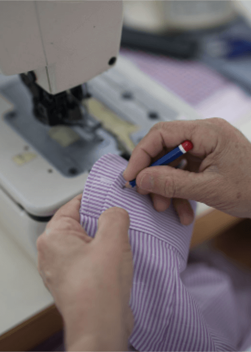Each piece begins with the search for the best fabrics, starting in the renowned city of Biella in the Piedmont region of northern Italy, famous for producing the world’s best wool. Here, wool is carefully spun, providing a softness and sophistication that must be experienced to be truly understood. From Biella, our journey continues to Albino, where high-quality cotton for shirts is woven into fabrics that deliver both durability and comfort. Finally, in the lake city of Como, master artisans produce our silk — celebrated for its exceptional sheen and delicacy.